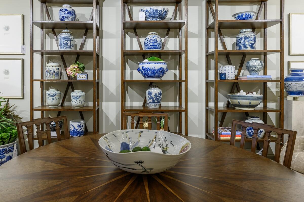Even though I’m in a more commercial environment, I set it up by room. It’s vignettes. I lean more traditional—I love wood—but I also do a lot of contemporary art and accessories. And I love color, so though I may have neutral upholstery, I have every color pillow you can imagine. When you use it in doses, people aren’t as afraid. When people come into the showroom, they say it feels inviting, and that’s what I’m going for. I [previously] worked for a great firm, but it was very, very formal, and that’s not what I’m about. I love my pretty stuff, but I’m also a klutz, so I want to be able to clean it up. I want people to be comfortable. To me, that’s the real success of any space.